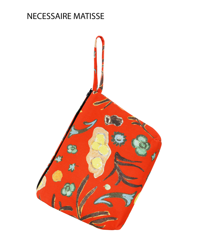 Tecido em sarja 100% algodão, impressão digital, forro impermeável, ziper na parte superior, alça lateral, releitura de obras de Henri Matisse, lingueta com texto explicativo sobre o artista.